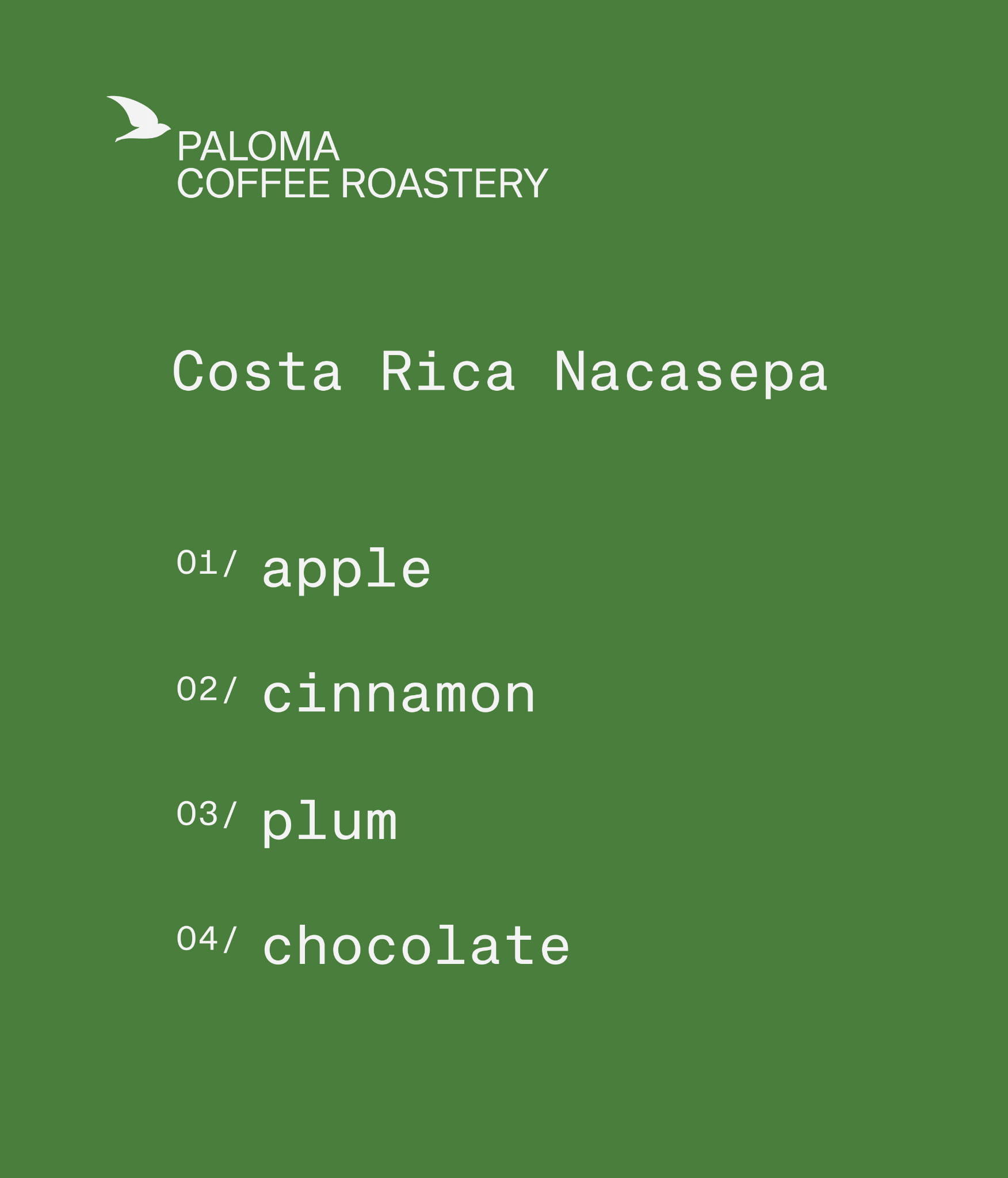 Kostaryka Nacasepa to kawa o wyraźnie słodkim i ciepłym smaku. Możemy wyczuć w niej nuty jabłka, cynamonki, śliwki i czekolady.